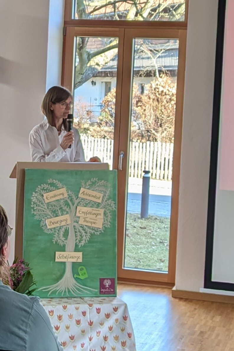 Der erste Teil bediente das Alter ab 30 und beinhaltete Anforderungen des Dreiecks Mutter-Beruf-Partnerschaft und unter anderem das Thema Schilddrüse. Monika Schmidberger erklärte deren vielfältige Einflüsse auf das körperliche und seelische Wohlbefinden und oftmals unerkannte Symptome von Müdigkeit und depressiver Verstimmung bis hin zu Gelenk- und Muskelschmerzen und den Einfluss von Faktoren wie Stress oder nicht intakter Darm- und Leberfunktion. Elisabeth Schönberger ergänzte mit Tipps zu gesunder und nährstoffreicher Ernährung.